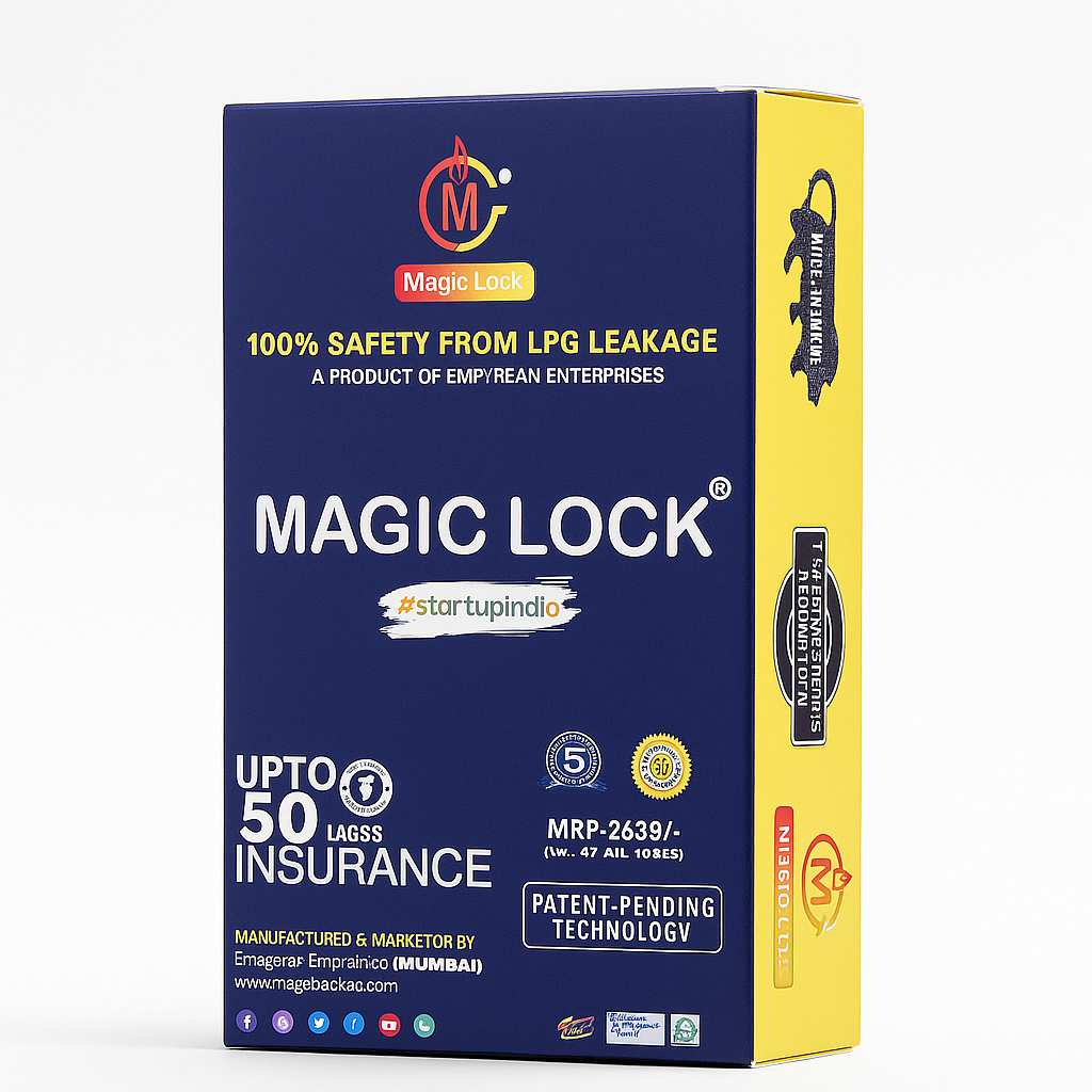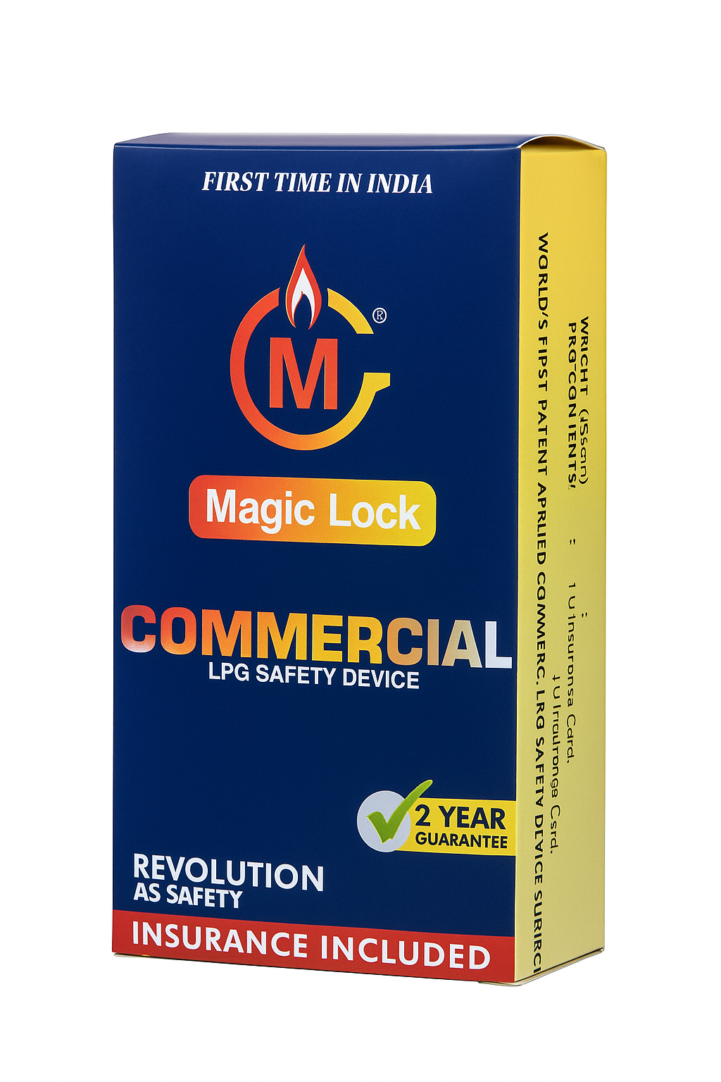 Specially engineered for hotels, restaurants, and industries , Cloud Kitchens & Construction Site Mess,  this breakthrough device automatically detects LPG leaks, regulates pressure, and cuts off gas supply in emergencies Automatically. With unmatched reliability and advanced technology, Magic Lock sets a new standard in commercial gas safety, protecting lives, property, and business continuity.This Product is also equiped with Insurance worth 50 Lakhs By The New India Assurance Co.Ltd.